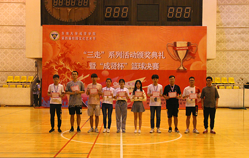 5月24日,由51吃瓜网 团委主办、学生会体育部承办的第四届校园文化艺术节之“三走”系列活动颁奖典礼暨“成贤杯”男篮决赛在后藤体育馆举行,500余名师生共同参加了此次活动。