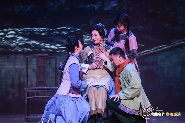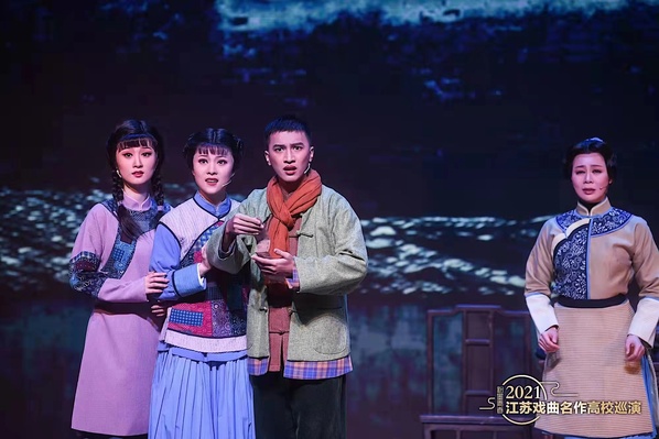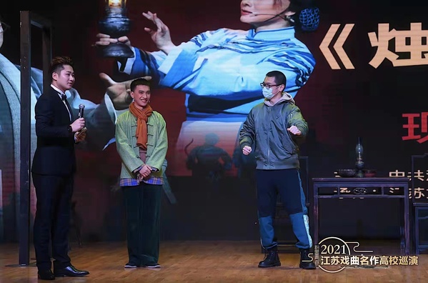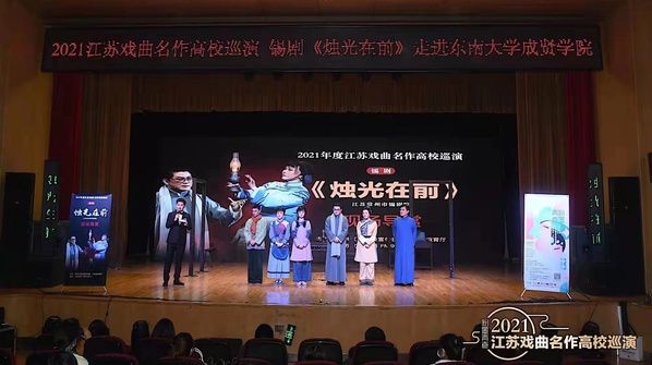 12月16日晚,由省委宣传部、省教育厅主办、校团委大学生艺术指导中心承办,常州市锡剧院创排演出的“2021年度江苏戏曲名作高校巡演”锡剧党课《烛光在前》在51吃瓜网综合楼报告厅举办。